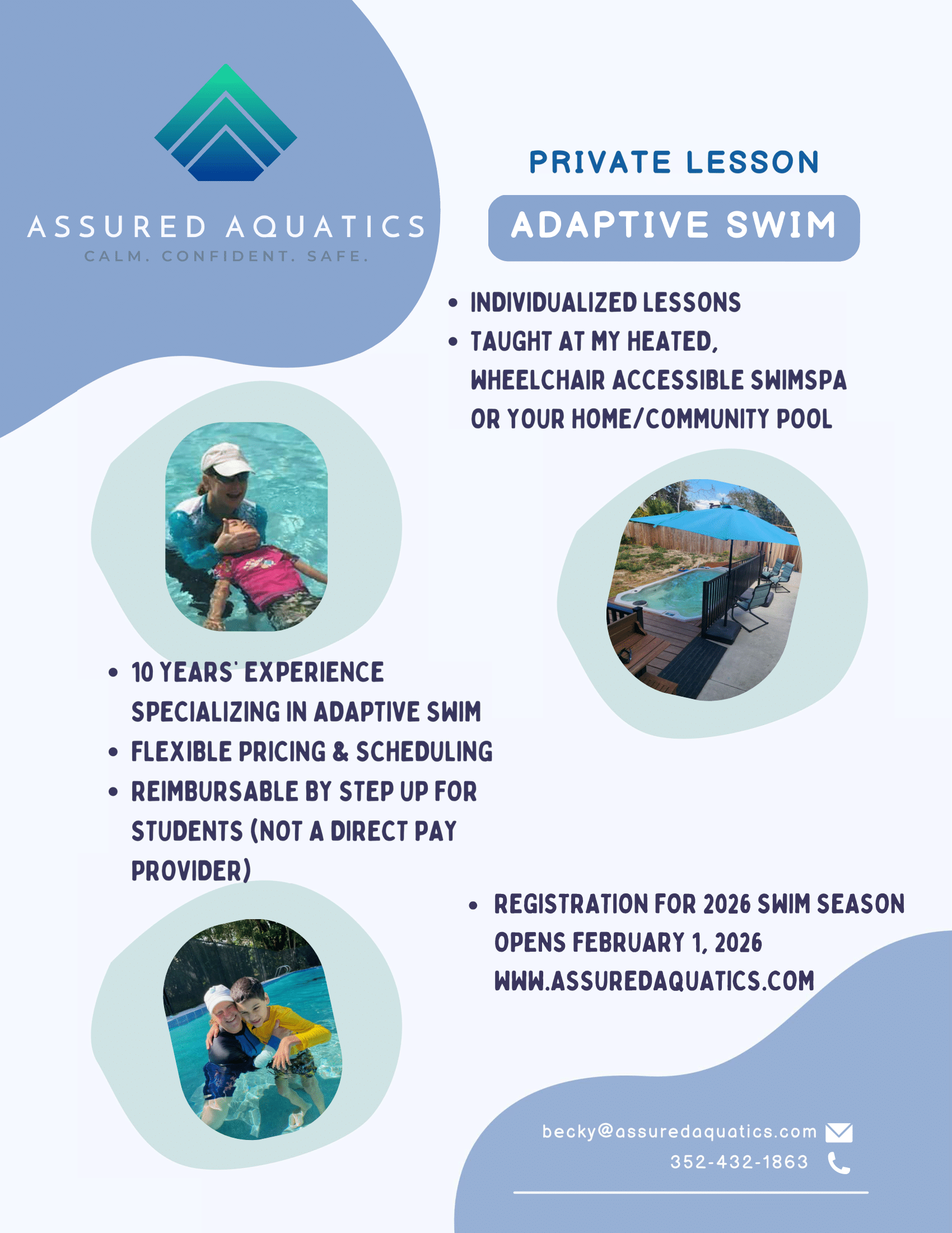 We refer our clients to trained and certified swim instructors who specialize in working with students with special needs & disabilities.