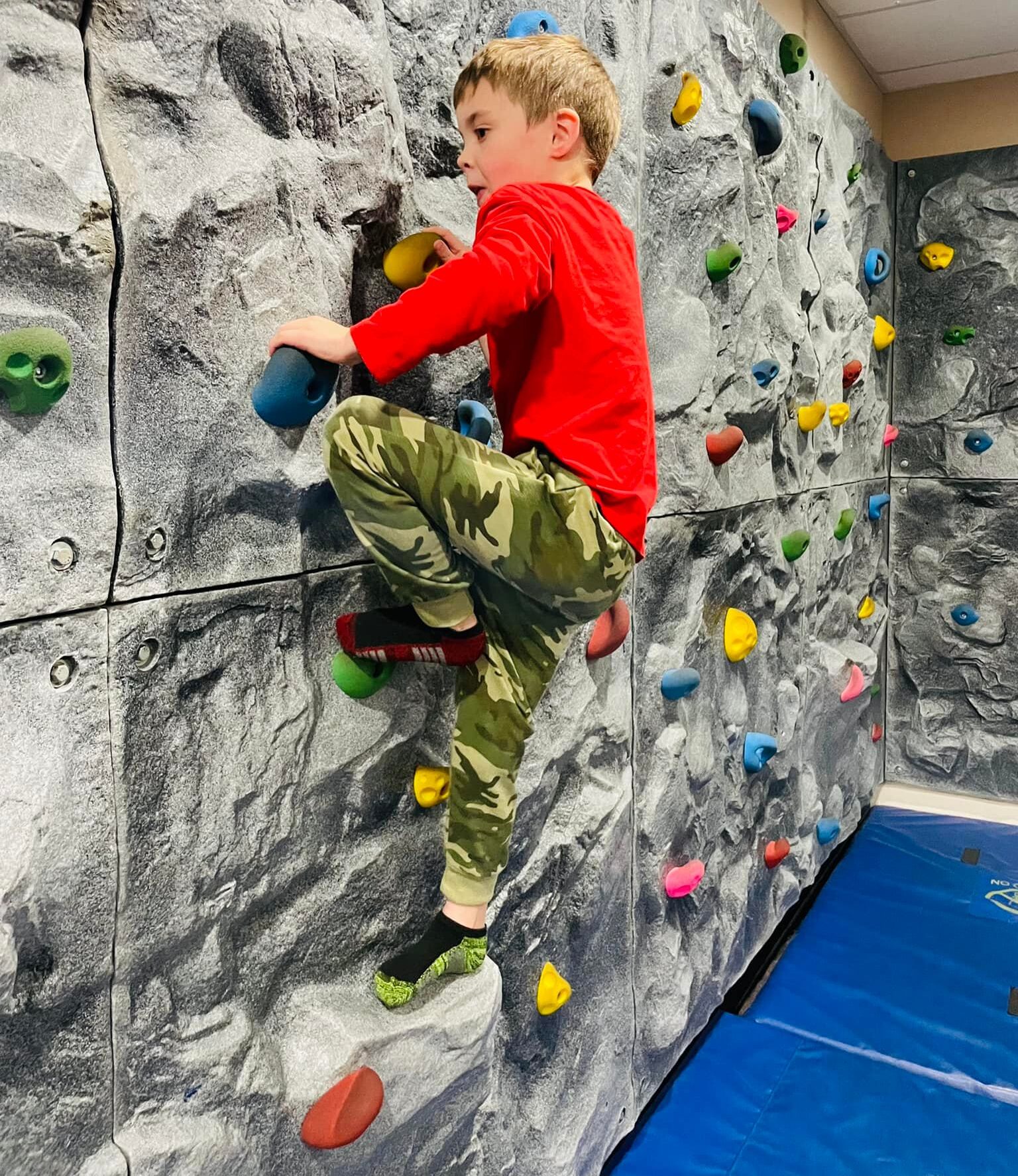 Private use of gymnastics and play equipment, including rock walls, balance beams, mini trampoline, foam pit, and more